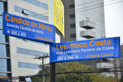 Quem passa pelo Centro Cívico nota a novidade: as ruas receberam novas placas de identificação. A sinalização apresenta o nome principal da via em tamanho maior; e o nome completo embaixo, em letra menor. A cor das letras também mudou de branca para amarela, dando maior destaque. Os novos modelos facilitam a identificação, principalmente para as pessoas com dificuldade de visão.