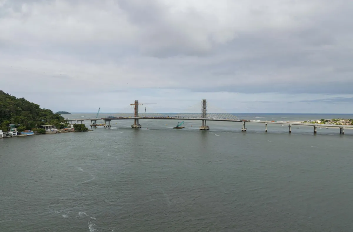 Os acessos à ponte também estão sendo trabalhados nessa etapa. No lado de Guaratuba, as contenções foram finalizadas e as equipes seguem com terraplenagem, drenagem e preparação para pavimentação. Já no lado Matinhos, estão acontecendo serviços de drenagem e pavimentação.