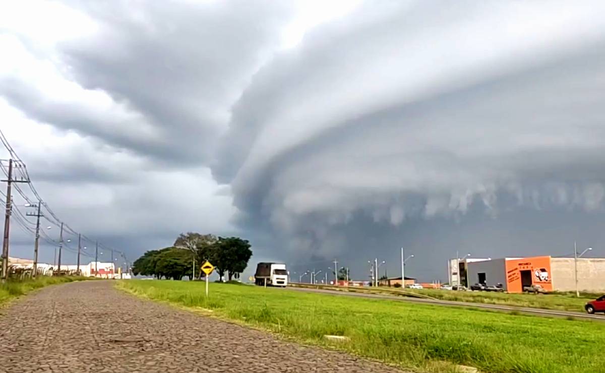 Uma enorme nuvem com uma aparência pouco amigável apareceu foi registrada na manhã desta quarta-feira (29), em Ibaiti, região do Norte Pioneiro do Paraná. Adriano Lavorato, morador da cidade, registrou em vídeo o fenômeno conhecido como “shelf cloud’, uma formação que antecede tempestades.