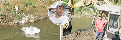 Morador do bairro, o operador da retroescavadeira que trabalha no local diz que já tirou de dentro do rio os mais absurdos objetos. “Já vi colchão, sofá, geladeira, tevê velha, computador… É triste. Se o pessoal tivesse um pouco mais de consciência, não haveria tantas enchentes”, lamenta Mauro, que prefere não informar o sobrenome.