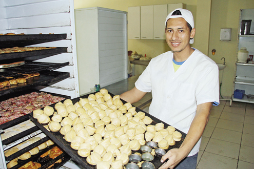 Uma figura simpática, que faz de tudo um pouco na padaria: prepara pão de minuto, pão francês, bolos, cuques e chineques, além de ajudar no atendimento do balcão. “Leio a Tribuna todos os dias. Diante de tanta notícia de tragédia, queria aparecer para mostrar como não é difícil lutar”, conta. Marques entra no trabalho às 6h30, faz uma pausa na hora do almoço e só deixa a padaria às 20h. “Venho para o trabalho feliz. Aqui é minha segunda casa. Aqui tenho pessoas que me ajudaram muito”, declara.