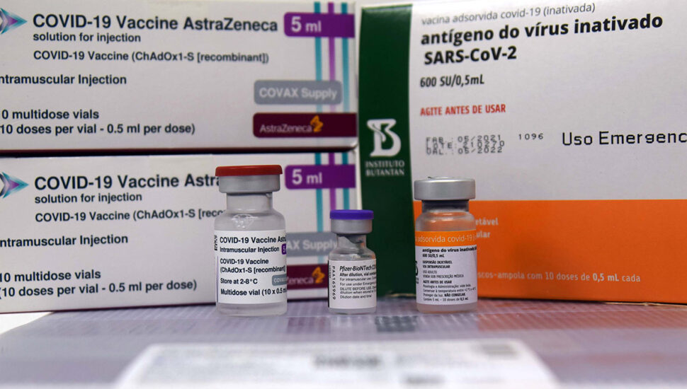 Dos faltosos, 39,75% correspondem àqueles que receberam o esquema primário com doses da AstraZeneca, 34,43% com Pfizer, 22,38% com CoronaVac e 3,44% com Janssen.