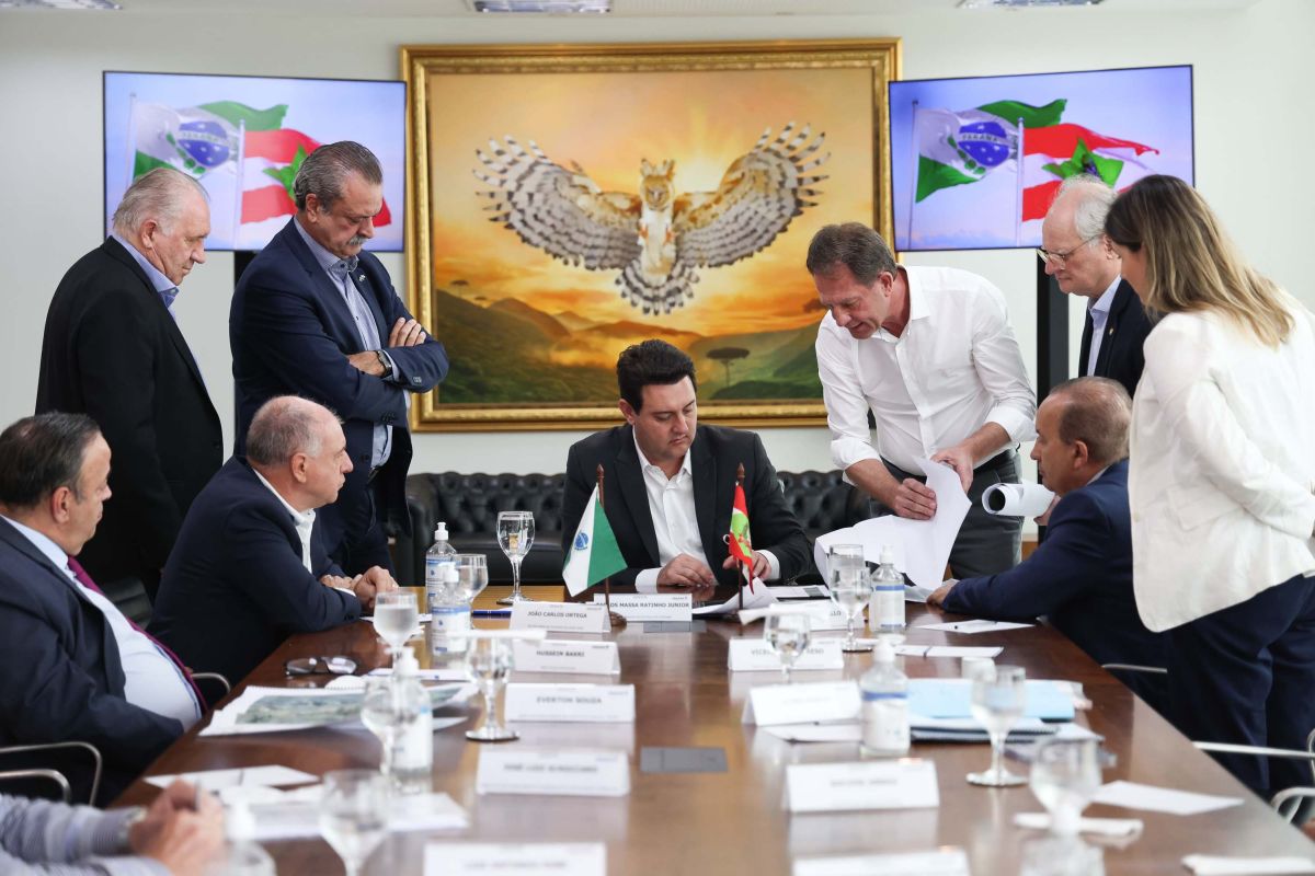 Os governadores do Paraná, Carlos Massa Ratinho Junior, e de Santa Catarina, Jorginho Melo, estabeleceram nesta segunda-feira (20), em reunião no Palácio Iguaçu, um grupo de trabalho para estudar as melhores formas de minimizar os efeitos das cheias do Rio Iguaçu, que afetam os dois estados. O grupo vai envolver os técnicos do Instituto Água e Terra (IAT) do Paraná e do Instituto do Meio Ambiente de Santa Catarina (IMA).