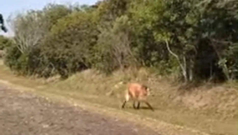 Nesta quinta, o animal ameaçado de extinção apareceu no caminho que dá acesso ao parque, próximo à portaria dos visitantes e foi flagrado por câmeras.