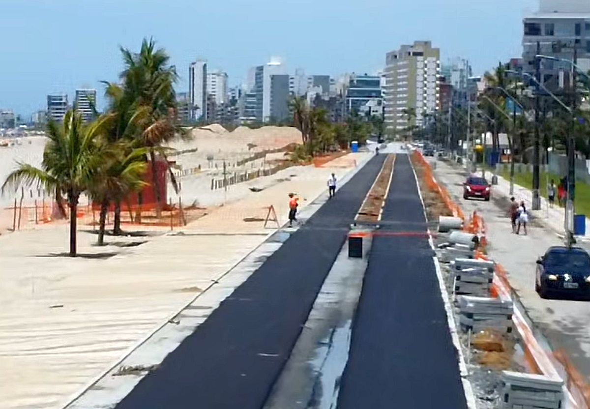 Neste domingo (30) as obras de revitalização da orla de Matinhos caminharam mais um pouco. Toda a estrutura viária na região está sendo reformulada, com a construção de novas calçadas, pistas para ciclismo e corrida, além de um paisagismo renovado. Os serviços fazem parte da grande obra promovida pelo Governo do Paraná que tem a engorda da praia como grande estrela.