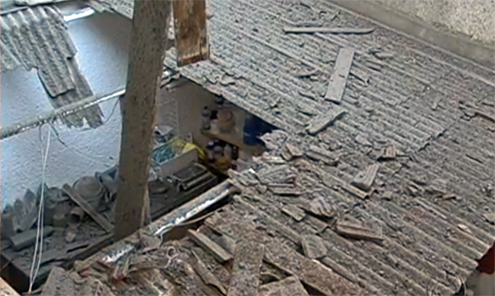 Moradores de Guarapuava, na região central do Paraná, tomaram um susto no meio da manhã desta terça-feira (4). Um pedaço de concreto de meia tonelada se soltou de uma contrução e caiu em uma casa.