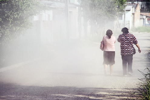 “Se a gente soubesse por que parou já era alguma coisa, mas ligo na prefeitura e não recebo nenhuma resposta”, reclama a costureira Eliana Terezinha Fernandes, que deixou de abrir as janelas de sua casa para tentar evitar que a poeira tome conta dos móveis e do chão. “A gente não vence o pó pra limpar a casa”, diz. A velocidade com que os carros passam pela rua, principalmente no horário de pico, só levanta mais poeira.