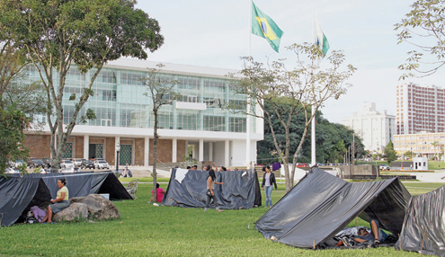 A Praça Nossa Senhora da Salete, em frente ao Palácio Iguaçu, é a nova moradia de aproximadamente 70 sem-teto, que há dez dias, foram despejados de suas casas no Jardim Sabará (CIC). Eles cobram soluções rápidas para as 700 famílias que ficaram sem ter onde morar depois da desocupação do local no dia 12 deste mês.