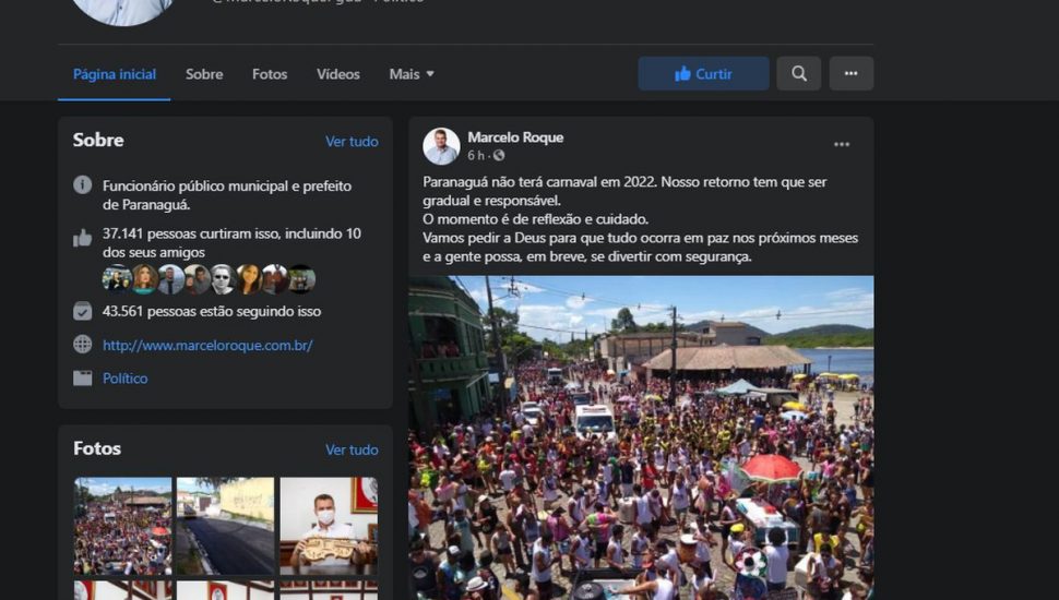 “Paranaguá não terá carnaval em 2022. Nosso retorno tem que ser gradual e responsável. O momento é de reflexão e cuidado. Vamos pedir a Deus para que tudo ocorra em paz nos próximos meses e a gente possa, em breve, se divertir com segurança”, disse o prefeito em seu perfil no Facebook. Em poucas horas a postagem tinha quase 2 mil comentários.