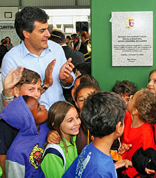 Recebido pela comunidade escolar e pais de estudantes, Beto Richa falou sobre a importância de garantir espaços para o esporte e a leitura nas escolas. “Difícil imaginar hábitos mais saudáveis para crianças e adolescentes da rede municipal de ensino. E não somente para eles, mas também para seus familiares, pois tanto as quadras quanto as bibliotecas são abertas à comunidade”, disse Beto Richa.