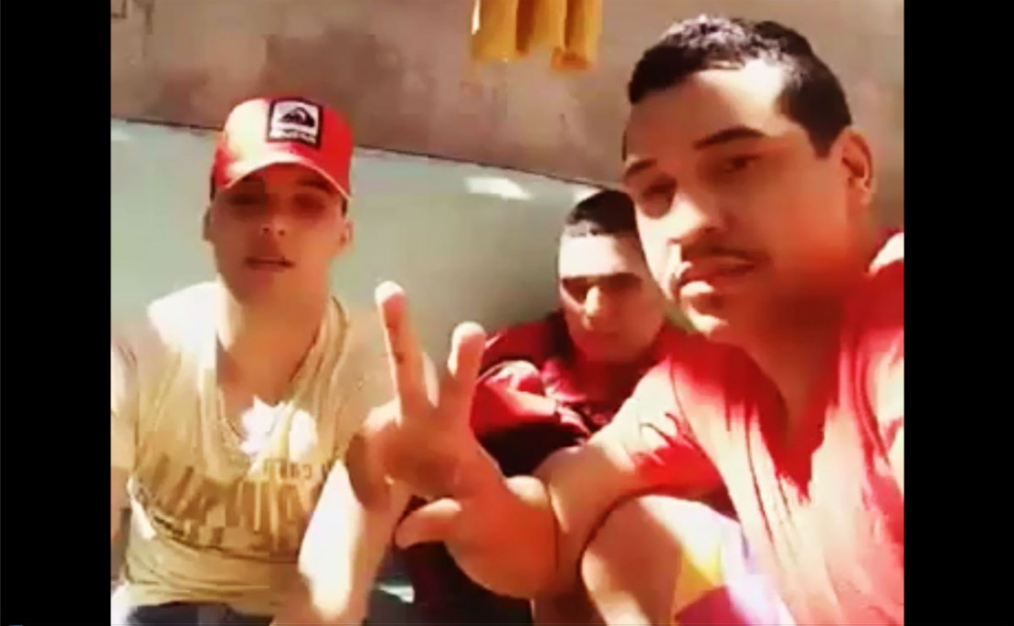 “Tá ao vivo, vamos aparecer na mídia, piazada”, diz o preso, identificado como Fabiano Santana, que cumpre pena por tráfico de drogas. Perto dele, outro rapaz fuma um cigarro de maconha. “Logo nós tá aí de volta, aí no mundão”, diz outro preso.