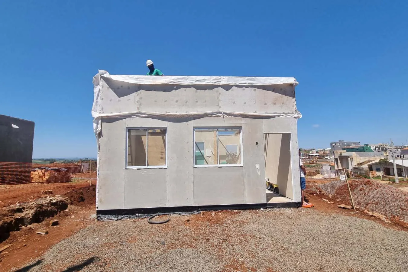 As obras foram iniciadas na última quarta-feira (3) com a fundação rasa, incluindo instalações elétricas, hidráulicas e de gás. No fim de semana (6 e 7), a estrutura principal foi erguida, com montagem das paredes pré-fabricadas e telhado. Os próximos passos são os acabamentos finais.