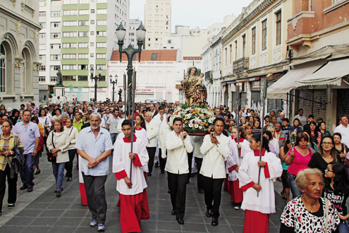 Procissão em homenagem a Nossa Senhora da Luz dos Pinhais, Padroeira de Curitiba, movimentou as ruas do Centro no final da tarde de ontem. Por volta das 17h, cerca de 2 mil fieis saíram em caminhada, que partiu da Paróquia Nossa Senhora do Guadalupe, seguiu pelas ruas Pedro Ivo, Barão do Rio Branco e a Praça Generoso Marques, até a Catedral Basílica, na Praça Tiradentes. Lá, missa celebrada pelo arcebispo de Curitiba, dom Moacir Vitti, marcou o Dia de Nos Senhora da Luz dos Pinhais.
