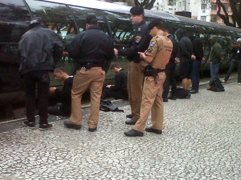 Pelo menos cinqüenta pessoas já haviam sido abordadas pela Polícia Militar nas praças da região Central de Curitiba entre as 16h e as 18h. De acordo com o tenente Cantador, o policiamento reforçado na região central neste mês é uma atividade padrão pelo aniversário da corporação.