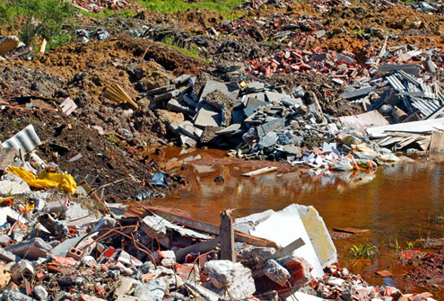 Outra trabalhadora do bairro, que também pede para que seu nome não seja divulgado, diz que a caliça acaba gerando poeira em dias secos e muita lama quando chove. Devido à chuva dos últimos dias, ontem de manhã era possível verificar muitas poças d”água dentro do terreno.