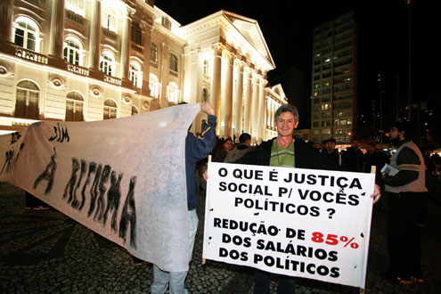 Uma das bandeiras dos manifestantes era o voto facultativo, como disse a estudante de Jornalismo, da Universidade Católica do Paraná, Helena Bianchi: “Estamos com uma série de reivindicações, como a reforma política. Estamos aqui para dizer o que queremos para o futuro do País. Somos contra o salário alto dos políticos”, afirma. O estudante de direito da UniCuritiba, Matheus Alves, não vê com bons olhos o plebiscito proposto pela presidente Dilma. “O governo vai direcionar a opinião do povo”, avalia.
