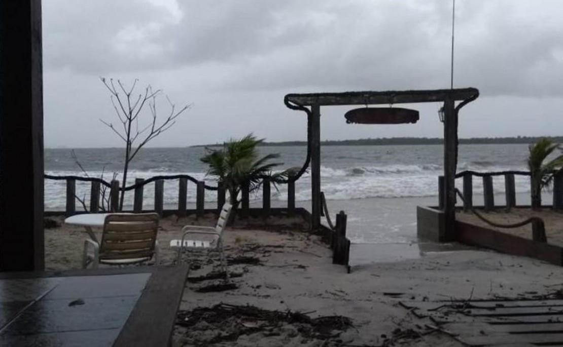 “Eles até tentaram, mas tiveram que voltar, porque fica muito perigoso. Não tinha nem como sair na praia com as ondas, porque elas estavam quebrando na areia”, conta Denise. As ondas também impediam o acesso ao trapiche da ilha, já que quebravam em cima da estrutura.