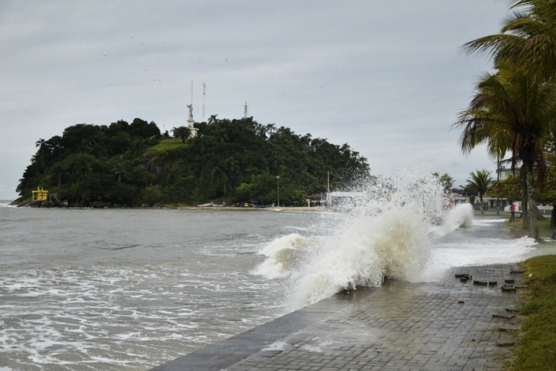 Alguns populares chegaram a se arriscar no calçadão, mesmo com o mar invadindo as calçadas. A tendência é que as águas sigam agitadas no início desta semana. As ondas devem chegar até a 2,5 metros.