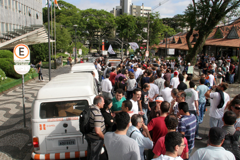 Funcionários da Copel realizaram na manhã desta quinta-feira (22) um protesto para reivindicar aumento salarial. A mobilização, que começou por volta das 8h50, tumultuou bastante o trânsito na região do bairro Batel. Eles bloquearam a Rua Coronel Dulcídio, esquina com a rua Benjamin Lins, onde fica a sede da estatal.