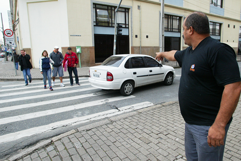 O encarregado de manutenção Arlindo de Souza, leitor assíduo da Tribuna, foi quem deu a dica aos Caçadores de Notícias sobre o problema na região. Ele alerta sobre os riscos de atropelamento no local. “Quem atravessa aqui presta atenção apenas no ônibus biarticulado que trafega na Travessa da Lapa. E não no carro ou na moto que entra na via que era para ser só do ônibus. Nunca vi atropelamento aqui. Mas o pessoal leva muitos sustos com a entrada dos carros”, relata.