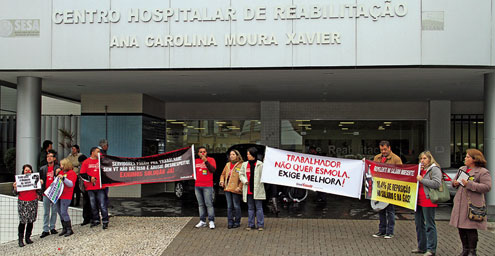 Funcionários públicos da saúde pararam ontem para exigir uma série de reivindicações ao governo. Segundo o Sindicato dos Servidores Estaduais da Saúde do Paraná (SindSaúde), o ato ocorreu em hospitais de nove cidades. Em Curitiba, cem pessoas participaram da manifestação em frente ao Centro Hospitalar de Reabilitação, no Cabral.