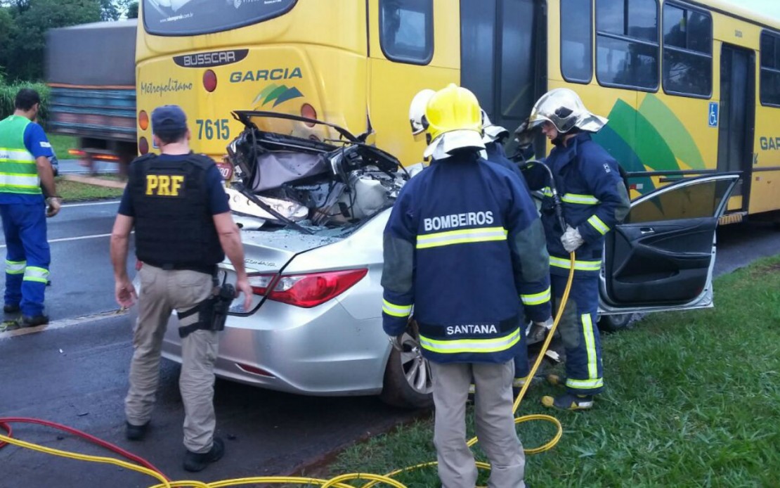 Três jovens morreram em um grave acidente na BR-376 em Maringá, no Norte do Paraná, por volta das 5h30 desta sexta-feira (23). O carro em que eles estavam, um Hyundai Sonata, bateu na traseira de um ônibus do transporte coletivo e ficou completamente destruído. As imagens impressionam.