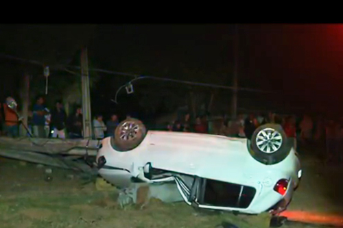Depois de perder o controle de seu Fox branco, em uma curva na Rodovia do Calcário, em Colombo, durante a madrugada desta quinta-feira (30), o estudante Mateus Pasqualotto, 26 anos, capotou o veículo e bateu contra um poste.