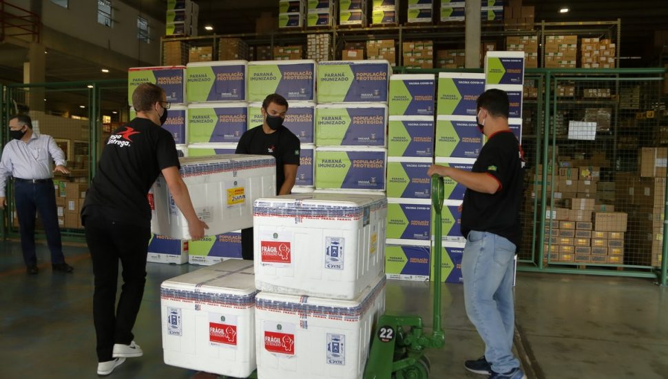 O Paraná soma 641.400 doses recebidas do Ministério da Saúde. Além do envio desta quarta-feira, o estado havia recebido a primeira remessa com 265.600 doses (Coronavac); a segunda de 86.500 (AstraZeneca), a terceira de 39.600 (Coronavac) e a quarta com 147.200 (Coronavac).