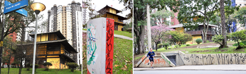 Um dos cartões-postais de Curitiba está sendo depredado por vândalos. A Praça do Japão, localizada num dos pontos mais nobres da capital, entre os bairros do Batel e Água Verde, foi tomada por pichações. Bancos, placas de sinalização, monumentos, estruturas do jardim e até o prédio do Memorial da Imigração Japonesa estão cobertos por rabiscos feitos com sprays.