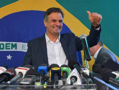 O governador reeleito de São Paulo, Geraldo Alckmin (PSDB) e a mulher Lu, e o senador eleito José Serra (PSDB), assistiram à celebração. Aécio chegou apenas para a coletiva de imprensa, concedida após a ex-senadora Marina Silva ter anunciado apoio à sua candidatura, neste segundo turno da corrida presidencial. Depois da entrevista, Aécio visitou a imagem de Nossa Senhora Aparecida, orou ajoelhado e disse que está confiante nesta sua corrida ao Palácio do Planalto.