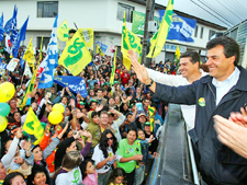 Os governadores de São Paulo, José Serra, e de Minas Gerais, Aécio Neves, estiveram em Curitiba para evento de apoio a Beto Richa, que reuniu outras lideranças nacionais, como o presidente nacional do PPS, Roberto Freire; o ex-senador Jorge Bornhausen (DEM); a senadora pelo Mato Grosso do Sul, Marisa Serrano, representando a executiva nacional do PSDB; os senadores paranaenses Osmar e Alvaro Dias; o presidente nacional do PSB, Carlos Siqueira; e o vice-prefeito licenciado Luciano Ducci.