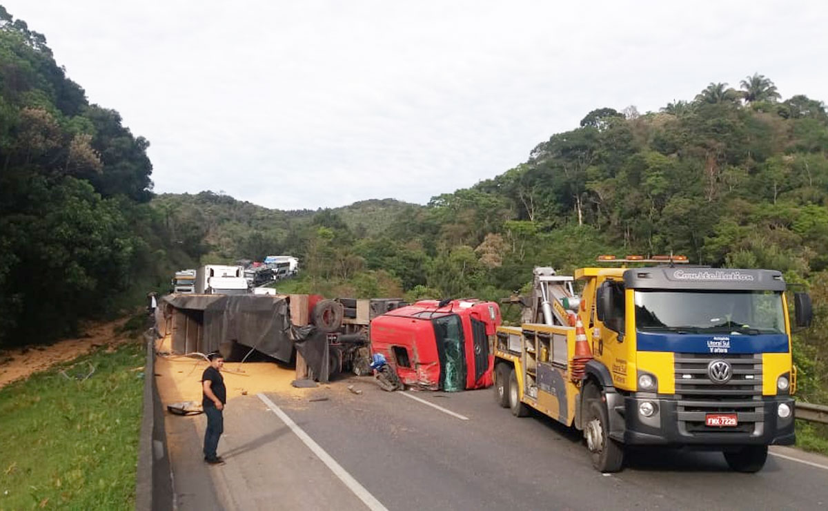 O tombamento de um caminhão no quilômetro 660 da BR-376 causou a interdição total da via, que liga Curitiba a Santa Catarina, por cerca de duas horas.