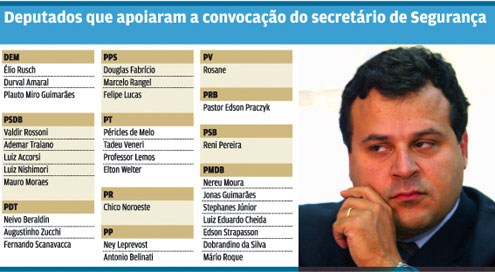 Com o apoio de peemedebistas e outros aliados do governo, a bancada de oposição na Assembleia Legislativa conseguiu reunir trinta e uma assinaturas para propor nova convocação do secretário de Segurança, Luiz Fernando Delazari, para falar sobre violência e criminalidade no Estado.