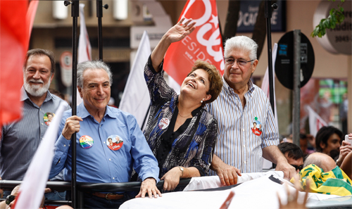 Dilma participou de uma caminhada, feita em cima de um carro aberto, ao lado dos peemedebistas e de Dias. A ex-ministra e candidata derrotada ao governo do Paraná Gleisi Hoffmann (PT) não participou do ato. Ela ficou em terceiro lugar na eleição, com 14,87% dos votos.
