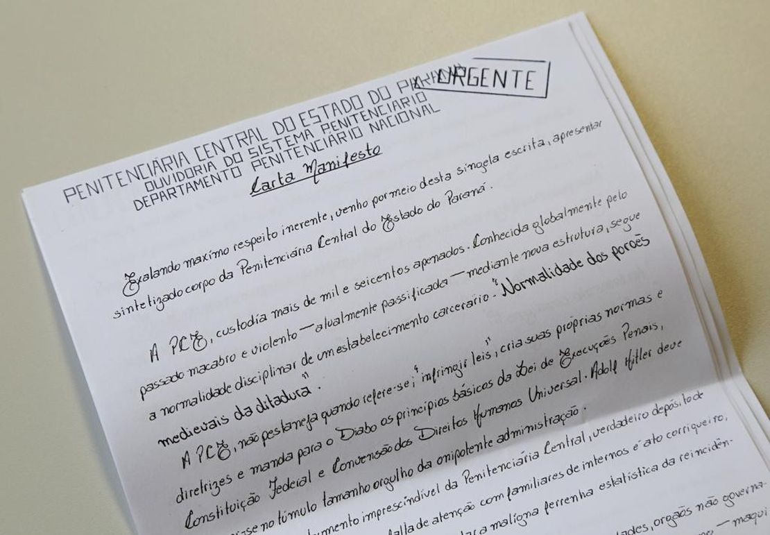 O manuscrito registra que a PCE é “conhecida pelo seu passado macabro e violento” e que lembra “os porões medievais da ditadura”. O texto é dividido em sete tópicos, cada um esmiuçando uma violação à Lei de Execuções Penais (LEP). Segundo os presos, “a PCE não pestaneja quando se refere a infringir leis, criar suas próprias normas e diretrizes, e manda pro Diabo os princípios básicos da LEP, Constituição Federal e Convenção dos Direitos Humanos Universal”.