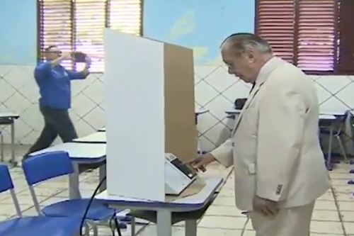 O vídeo que “viralizou” nas redes sociais é uma ampliação da reportagem exibida domingo pela TV Amapá, retransmissora da TV Globo no Estado. Nele, aparecem apenas a mão, a urna eletrônica, o local da votação e um paletó bege com adesivos de Dilma e do candidato do PDT ao governo do Amapá, Waldez Góes, eleito com apoio de Sarney.