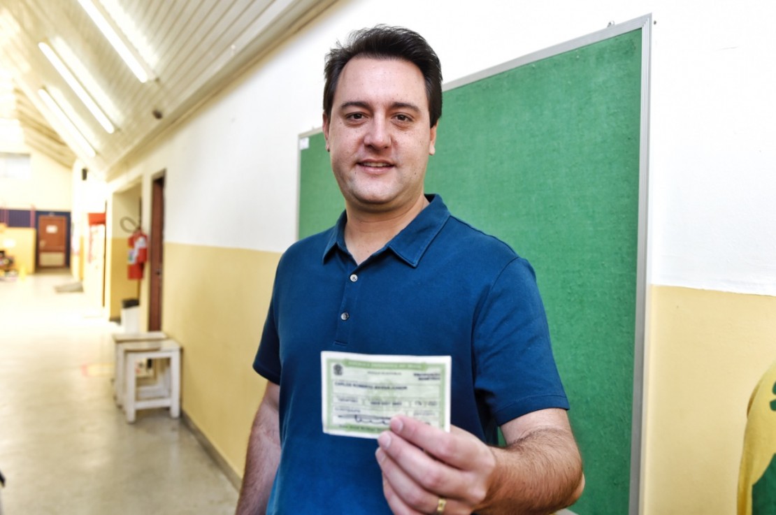 O governador eleito do Paraná já no primeiro turno Ratinho Junior (PSD) votou na manhã deste domingo em uma escola estadual no bairro Santa Felicidade, em Curitiba. O político, que se manteve neutro na disputa presidencial no primeiro turno, declarou apoio a Jair Bolsonaro (PSL) no segundo turno.