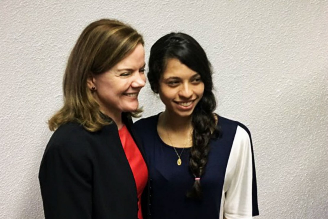 A estudante paranaense Ana Júlia Ribeiro, que ficou conhecida após discursar na Assembleia Legislativa do Paraná, em Curitiba, foi ao Senado nesta segunda-feira (31) e posou para fotos ao lado da senadora Gleisi Hoffmann (PT).