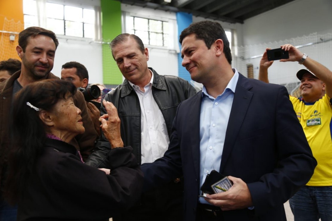 Mesmo sem dar entrevistas, Moro conversou com uma eleitora que o aguardava desde cedo. Dona Terezinha Hamazaki parou para apertar a mão de Moro e agradecer. Depois, o juiz saiu aplaudido por outros cidadãos.