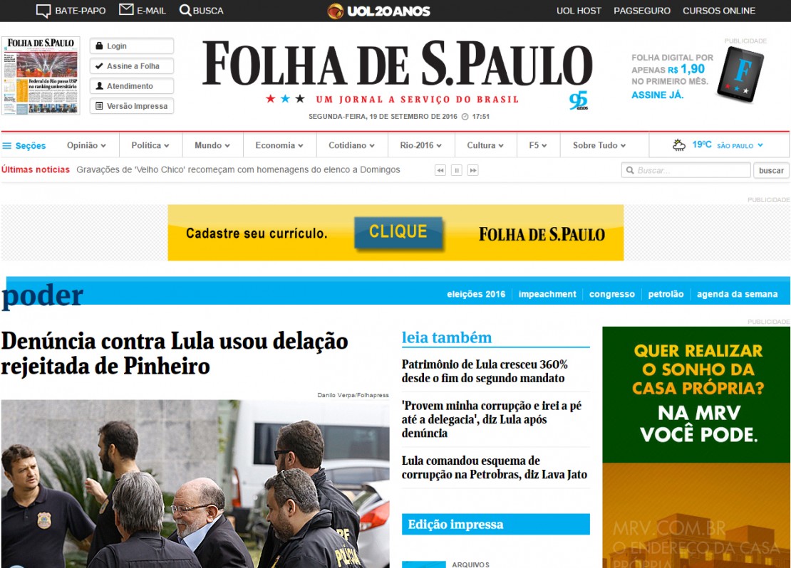 A força-tarefa Lava Jato, diante de falsidade da conclusão a que chega a reportagem “Denúncia contra Lula usou delação rejeitada de Pinheiro”, publicada pelo jornal Folha de S. Paulo em 18 de setembro de 2016, informa que o Ministério Público Federal não usou qualquer informação de suposto esboço de delação do acusado Léo Pinheiro para a elaboração da acusação oferecida contra o ex-presidente Lula na última quarta-feira (14/9).