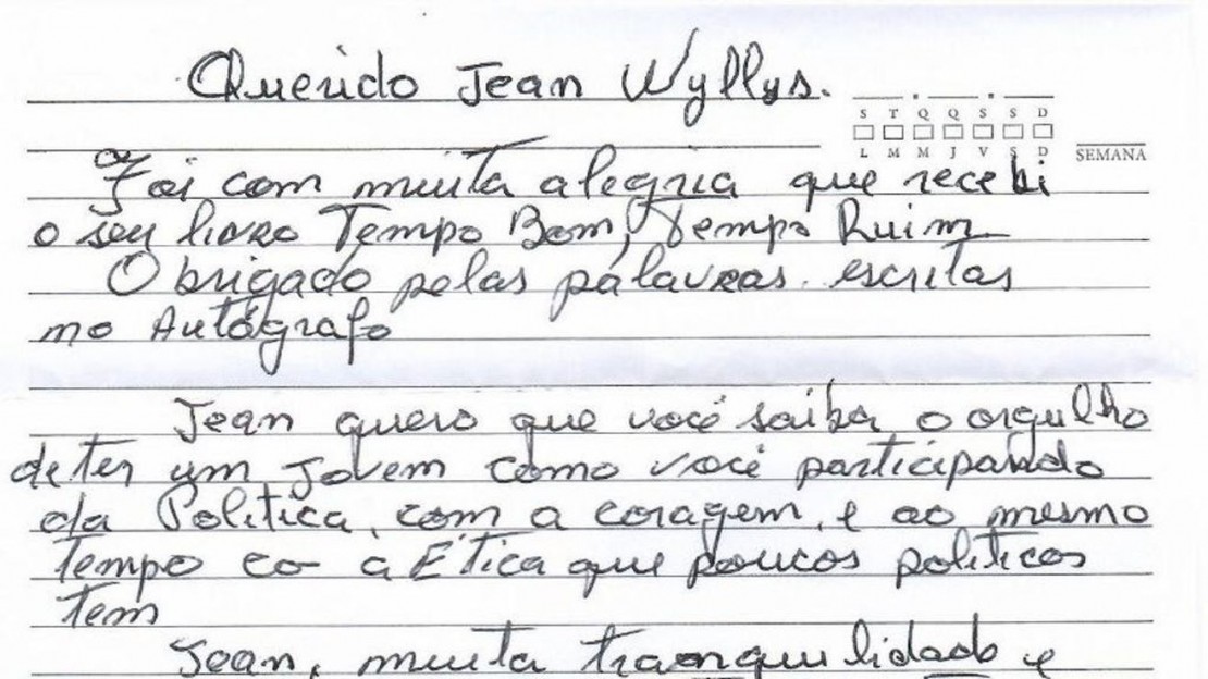 Foi a segunda carta que Lula escreveu a Wyllys da prisão. A primeira foi enviada quando ele lançou sua candidatura à reeleição para a Câmara, em 2018. No novo texto, Lula orienta o deputado a “não ceder nas suas convicções”. “Pode ter certeza que você tem na minha pessoa um companheiro que acredita, confia, e ama você”, redigiu o ex-presidente.