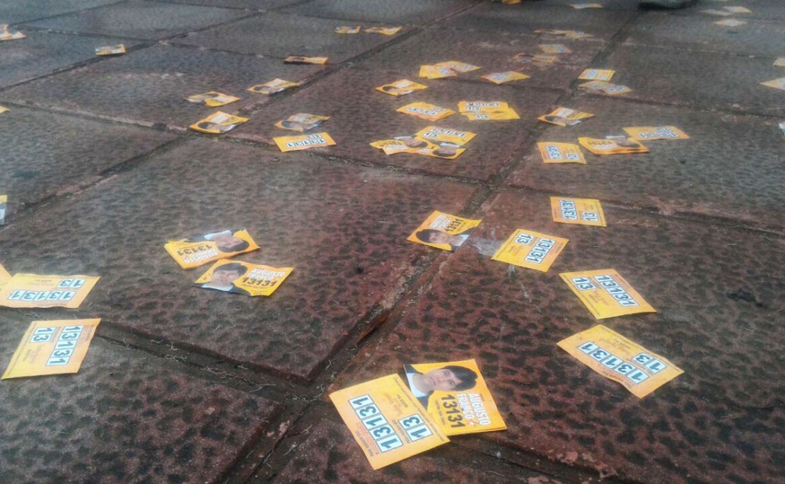 Mais uma vez, o dia de eleição é marcado pela sujeira nas ruas e em locais de votação por toda a cidade. Desde as primeiras horas do dia já era possível ver ‘santinhos’ jogados em áreas públicas ou em frente a escolas de Curitiba. A prática é considerada crime.