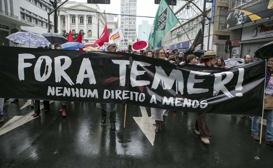 Integrantes da Frente Brasil Popular Paraná e da Frente Resistência Democrática protestam nesta quarta-feira (24) em Curitiba pela saída do presidente Michel Temer (PMDB), investigado por obstrução à Justiça, corrupção passiva e participação em organização criminosa. O ato, batizado de “Ocupa Curitiba, Diretas Já”, está marcado para ocorrer às 18 horas, na Praça Santos Andrade.