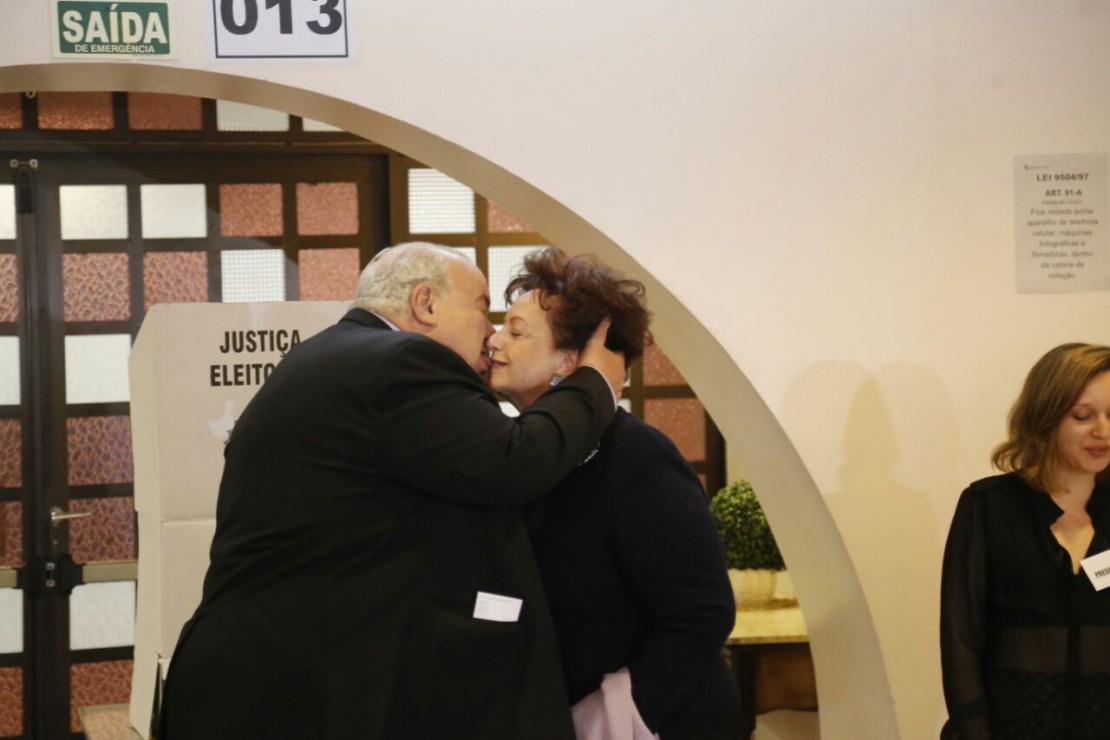 O candidato Rafael Greca votou perto do meio-dia na Primeira Igreja Batista, no Batel, acompanhado da mulher, Margarita Sansone e do candidato a vice, Eduardo Pimentel. No local, Greca aproveitou para pedir o voto das pessoas que ainda não compareceram às urnas neste domingo.