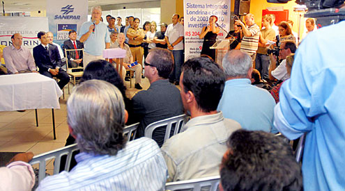 A discussão começou antes mesmo da chegada do governador, quando os moradores foram pedir ao presidente da Sanepar, Stênio Jacob, que não construísse a estação no local.