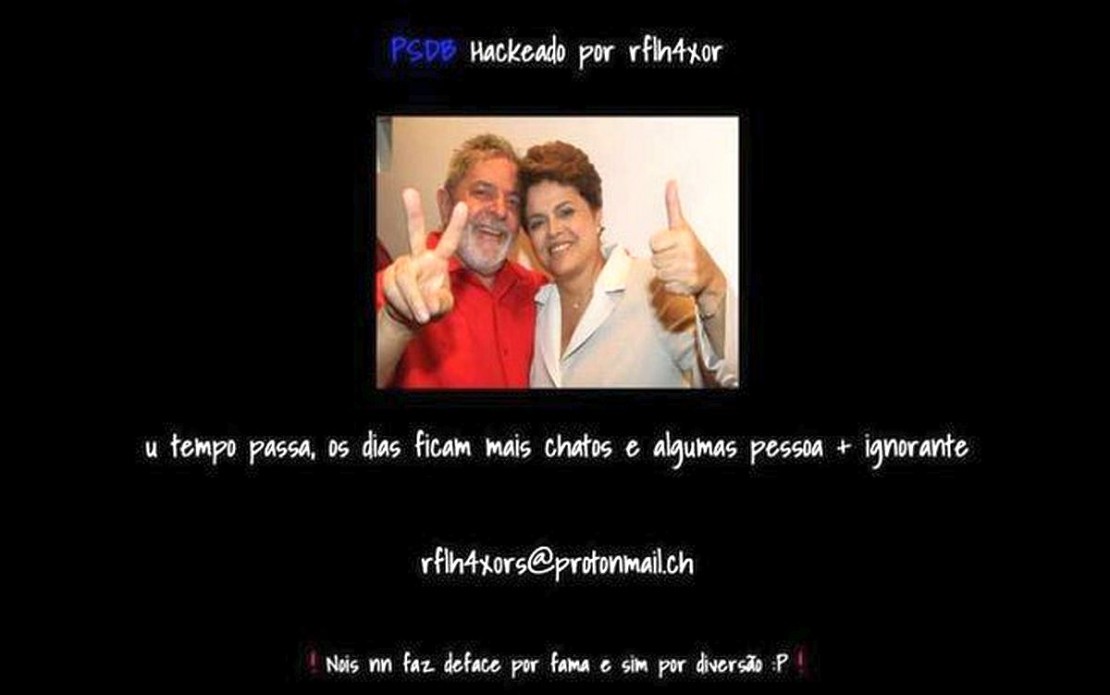 O hacker apagou todo o conteúdo da página inicial e o substituiu por uma foto dos ex-presidentes Lula e Dilma Rousseff. Logo abaixo da imagem, o invasor também escreveu uma frase: “o tempo passa, os dias ficam mais chatos e algumas pessoas mais ignorantes”.