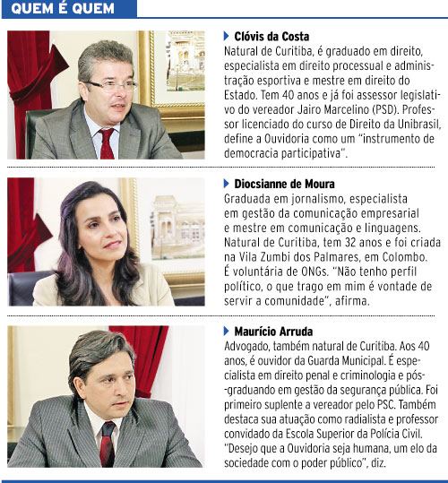 Os três concorrentes ao cargo de ouvidor de Curitiba foram eleitos pela comissão eleitoral no dia 11 de dezembro, entre 33 postulantes ao cargo. Clóvis da Costa recebeu seis votos, Diocsianne de Moura quatro e Maurício Arruda três.