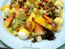 Uma salada com folhas e frutas, sucesso no Josephine Bistrô, de São Paulo.