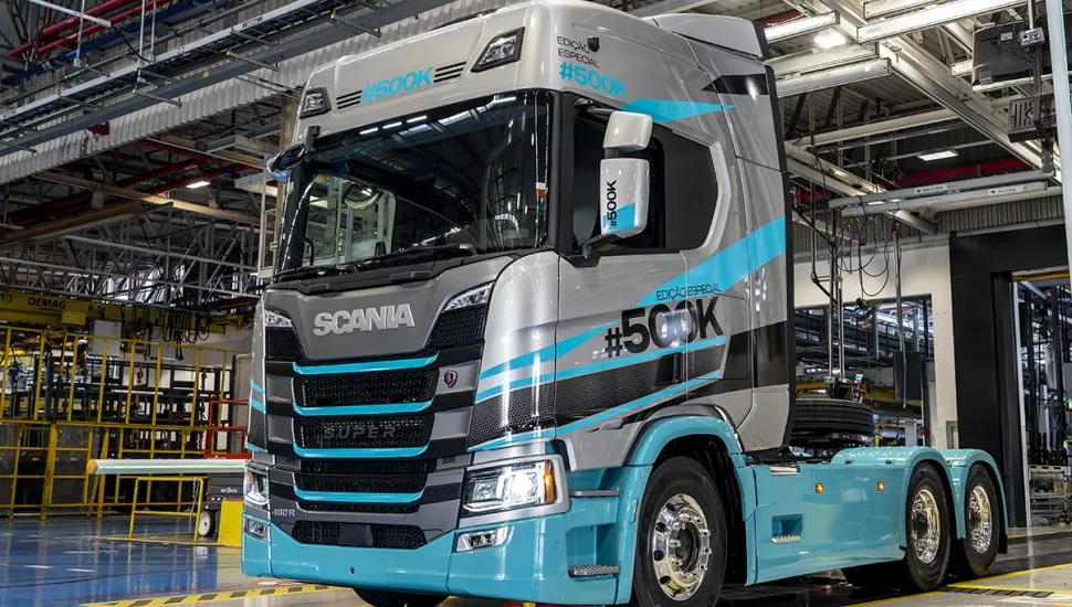 Presente no Brasil desde 1957, naquela época no bairro do Ipiranga, em São Paulo, a Scania bateu o marco histórico de 500 mil caminhões fabricados no país. Atualmente em São Bernardo do Campo (SP), para onde se mudou cinco anos após aportar no Brasil, em 1962, a montadora sueca conta com uma unidade de produção com capacidade anual de 30 mil veículos e quase 6 mil colaboradores.