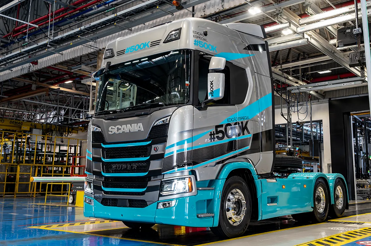Presente no Brasil desde 1957, naquela época no bairro do Ipiranga, em São Paulo, a Scania bateu o marco histórico de 500 mil caminhões fabricados no país. Atualmente em São Bernardo do Campo (SP), para onde se mudou cinco anos após aportar no Brasil, em 1962, a montadora sueca conta com uma unidade de produção com capacidade anual de 30 mil veículos e quase 6 mil colaboradores.